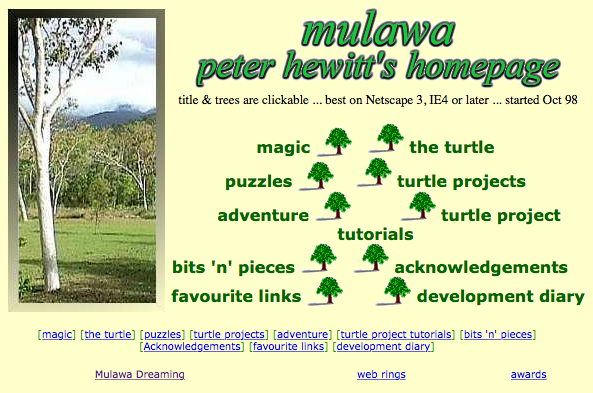 My memory's a bit hazy but you can see that the 1998 website is now just the single entry "mulawa" - it has been entirely eclipsed by all my other endeavours!