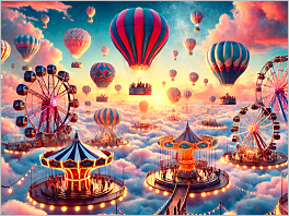 40. A carnival in the clouds, with hot air balloons and floating rides.