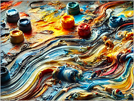 39. Paint swirls: A close-up of oil paints mixing on a palette.