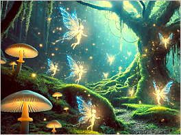 16. A hidden grove where fairies dance around a glowing tree.