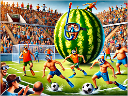 56. A soccer game where the ball is a watermelon, and the players are all wearing snorkels and flippers.
